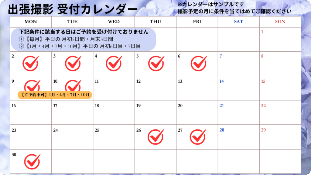 出張撮影可能な日程について